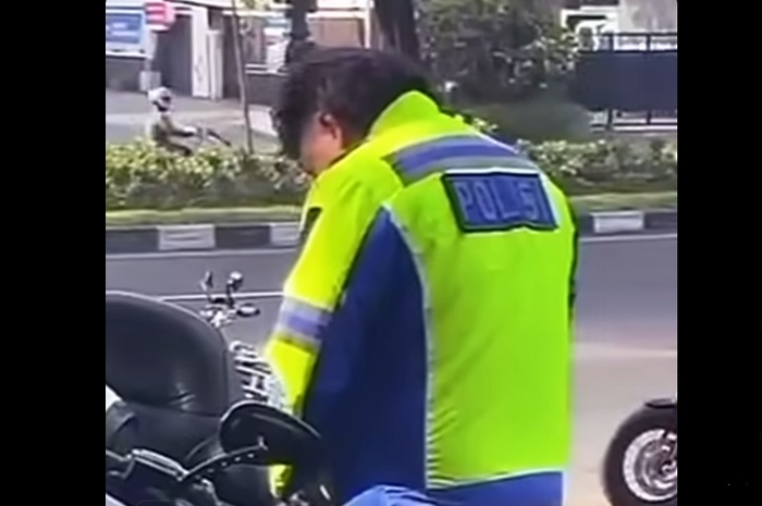 - Pengendara Harley-Davidson terlihat mengendarai motor dengan jaket Polantas lengkap atribut resmi.